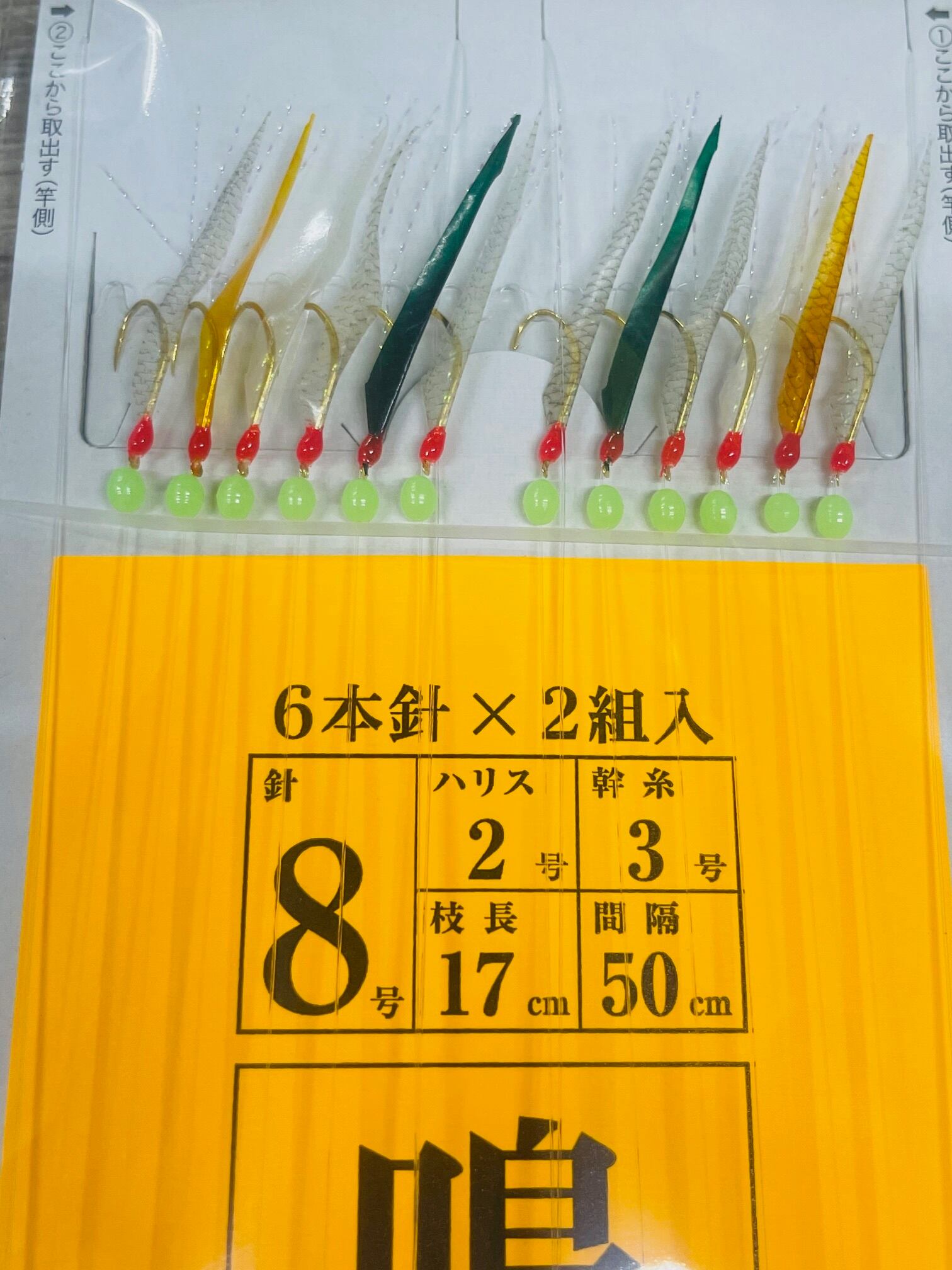 ・8号針 ハリス2号 幹糸3号 枝17cm 間50cm(ビーズ蛍光)